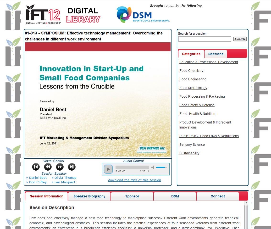 Our interactive dvd-rom has been developed over the years, including continual improvements. The dvd-rom is a compilation of an entire conference program including the audio presentations, session PowerPoint’s, speaker biographies, session descriptions, session objectives, speaker contact information, conference highlights, and social networking links. The entire program is produced onto 1-3 discs. The dvd-rom has outperformed all of its competitors by being self-launching, user-friendly, cross-platform, interactive, and requiring no additional software to operate.